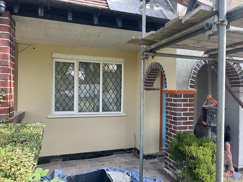 Dubbing out brickwork with Krend Basecoat leaving key for following coat